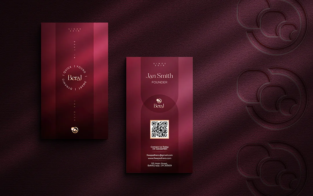 Free Red Elegant Vertical Business Card Editable PSD Template