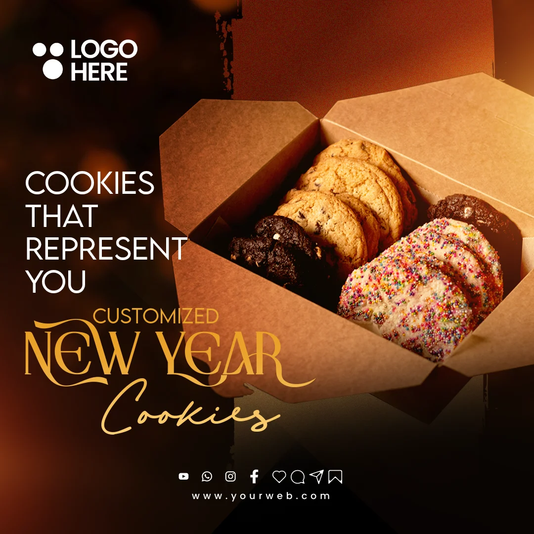 Festive Appeal: With a poster inspired by the coziness of Christmas, featuring simple text, light leaks highlight the magic of your cookies, pastries, cakes, etc.