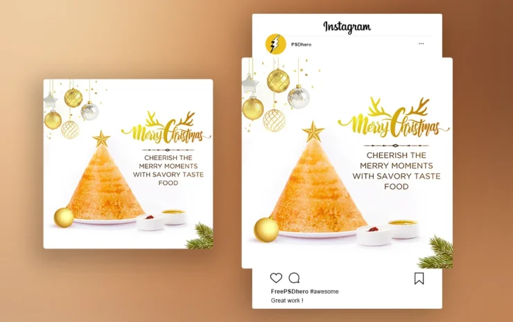 Ready to make your holiday food promotions one step ahead? Well, the Merry Christmas Food Social Media PSD Template is all you need to give your holiday posts a really festive, catchy, and interactive look. Be it for a bakery, restaurant, or catering service, this beautifully designed and fully editable template helps connect with your audience while showcasing your culinary delights.