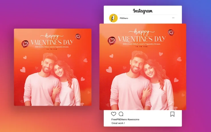 Post your beautifully crafted Valentine’s Day visual on Instagram to captivate your audience and enhance engagement with your content.